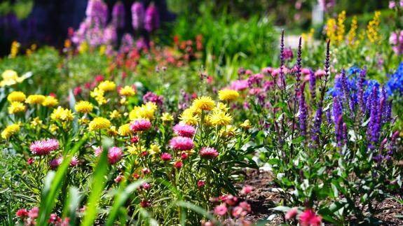 位于国家植物园(北园)温室前的“虹影漫步”花境长约100米,占地面积800余平方米,是以植物的不同色彩为主题的长效花境,展示以多年生花卉为主的植物200余种(含品种)。千姿百态的植物在流动的光影中,倾泻成花境里彩虹般缤纷的色彩,橙黄、红粉、紫白三段不同色系的花卉在如茵绿草中各自绽放。